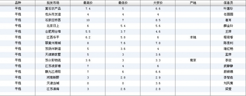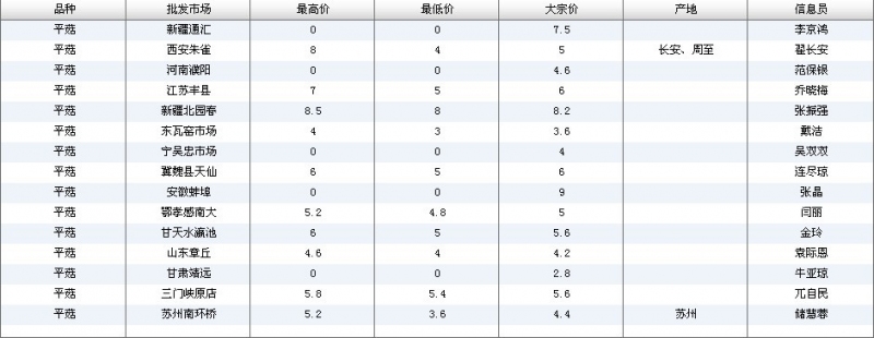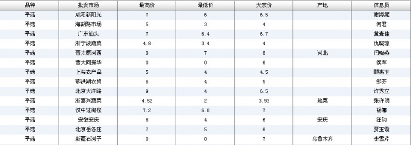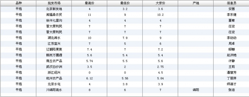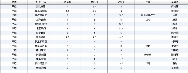 2012.05.02 平菇全国批发市场价格行情 单位(元/公斤) 来源:全国农产品批发市场价格信息网