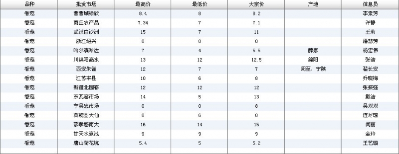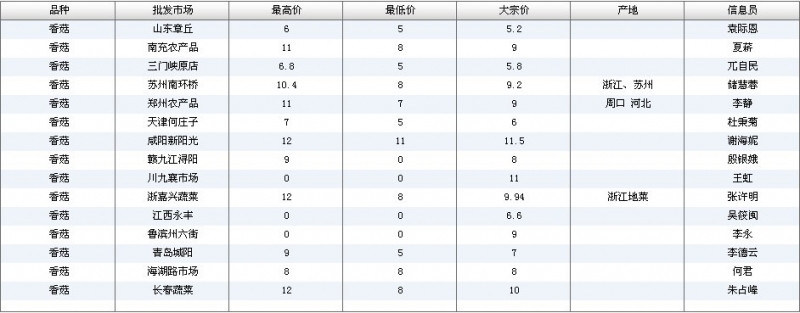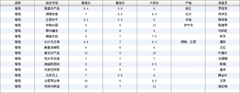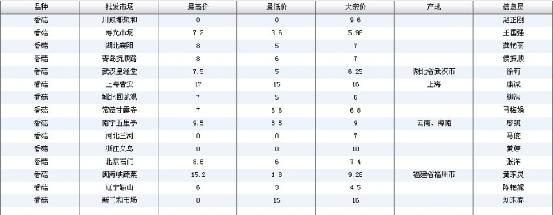 2012.05.02 香菇全国批发市场价格行情 单位(元/公斤) 来源:全国农产品批发市场价格信息网