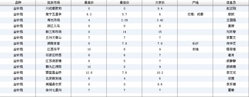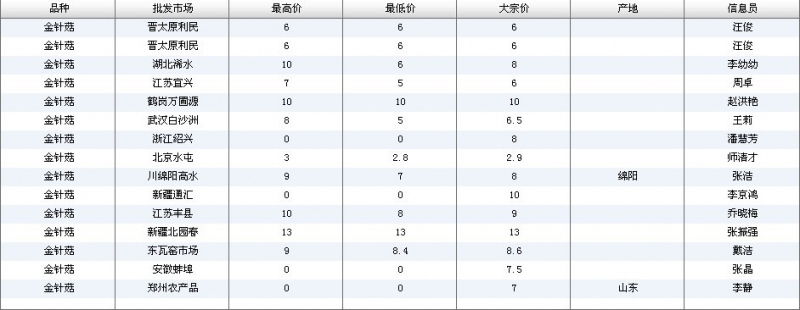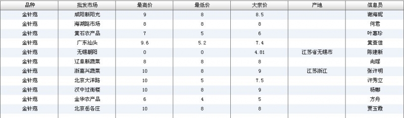 2012.05.02 金针菇全国批发市场价格行情 单位(元/公斤) 来源:全国农产品批发市场价格信息网