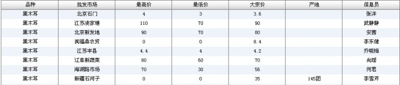 2022年3月18日黑木耳全国批发市场行情