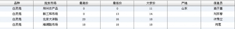 2012.05.03 白灵菇全国批发市场价格行情 单位(元/公斤) 来源:全国农产品批发市场价格信息网