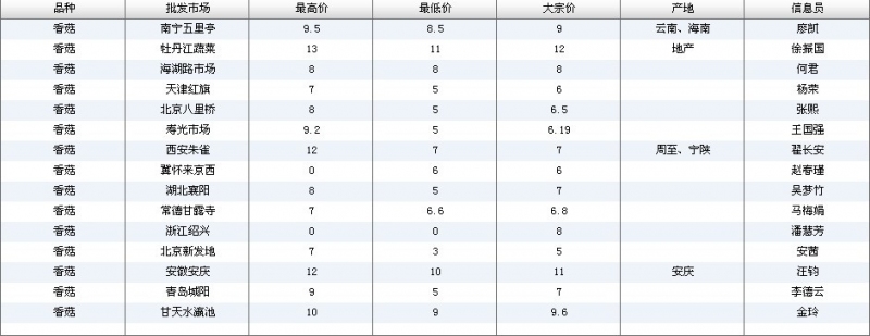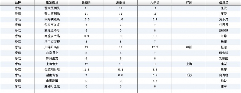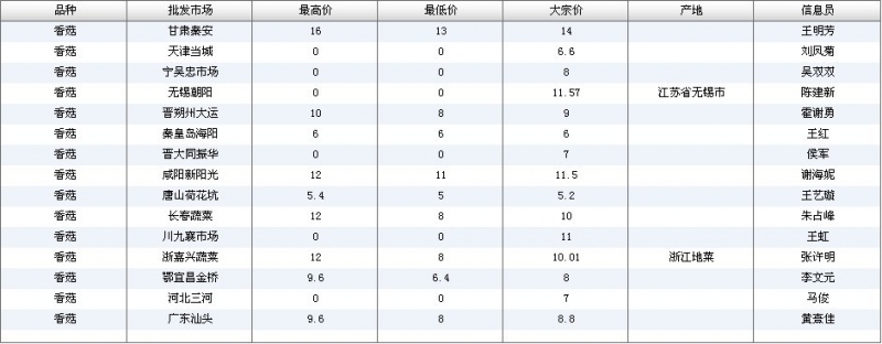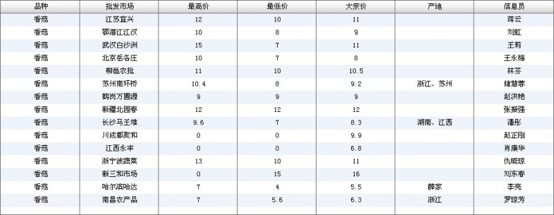 2012.05.03 香菇全国批发市场价格行情 单位(元/公斤) 来源:全国农产品批发市场价格信息网