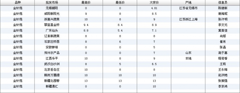 2024年3月8日全国主要批发市场金针菇价格行情