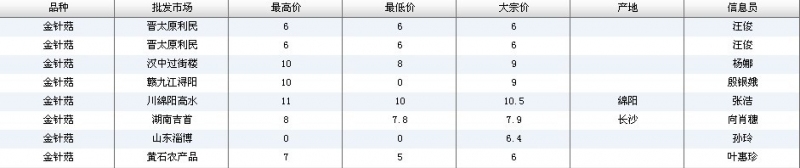 2012.05.03 金针菇全国批发市场价格行情 单位(元/公斤) 来源:全国农产品批发市场价格信息网