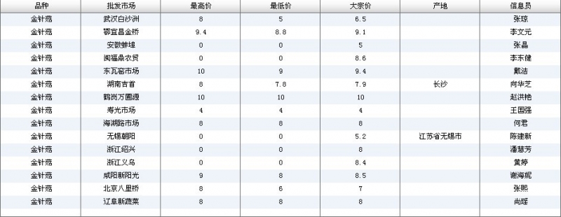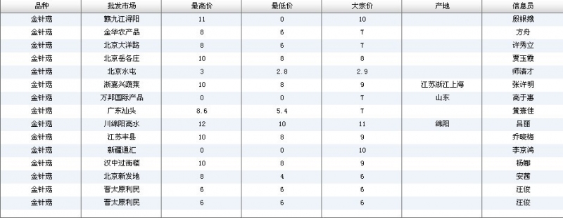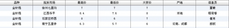 2012.05.04 金针菇全国批发市场价格行情 单位(元/公斤) 来源:全国农产品批发市场价格信息网