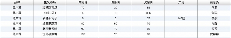 2012.05.05 黑木耳全国批发市场价格行情 单位(元/公斤) 来源:全国农产品批发市场价格信息网