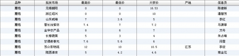 2012.05.07 蘑菇全国批发市场价格行情 单位(元/公斤) 来源:全国农产品批发市场价格信息网