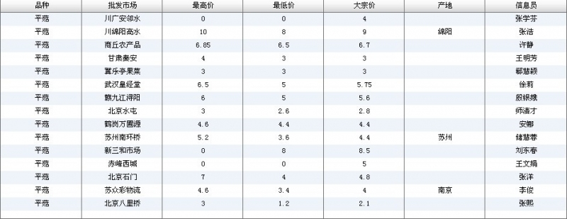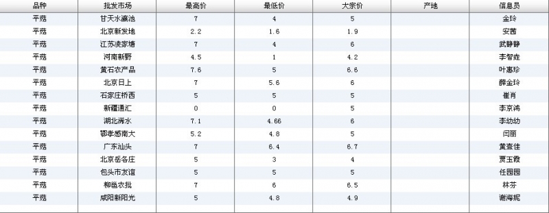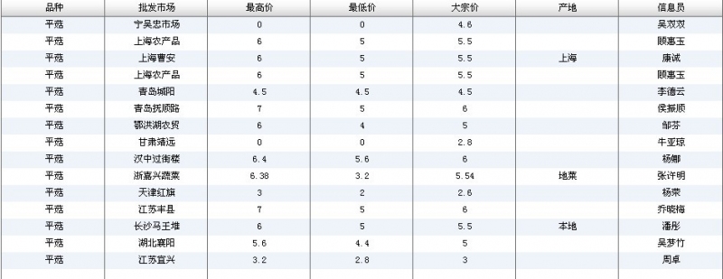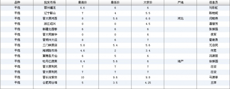 2012.05.07 平菇全国批发市场价格行情 单位(元/公斤) 来源:全国农产品批发市场价格信息网