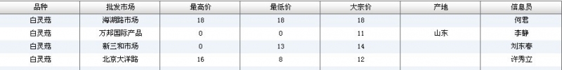 2012.05.07 白灵菇全国批发市场价格行情 单位(元/公斤) 来源:全国农产品批发市场价格信息网