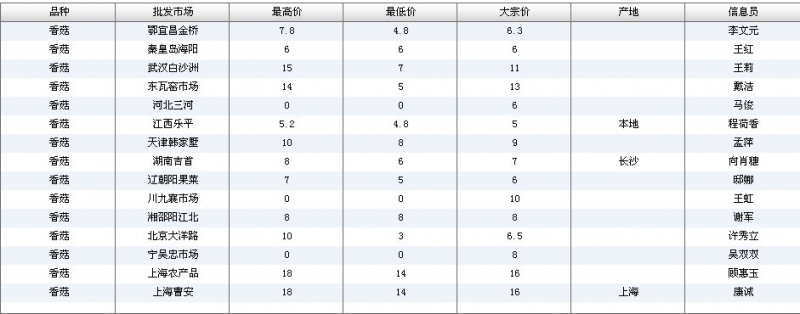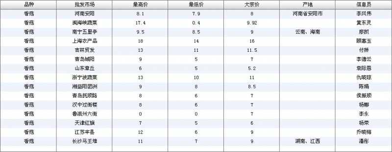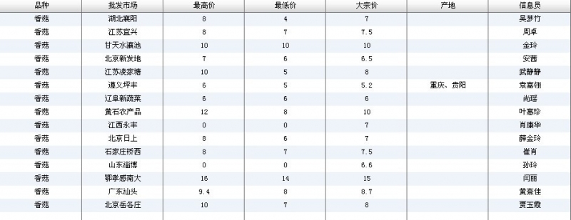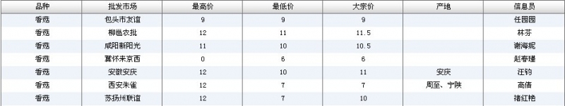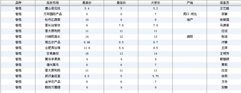 2012.05.07 香菇全国批发市场价格行情 单位(元/公斤) 来源:全国农产品批发市场价格信息网