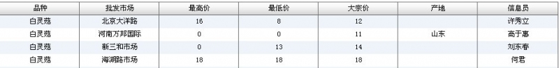 2012.05.08 白灵菇全国批发市场价格行情 单位(元/公斤) 来源:全国农产品批发市场价格信息网