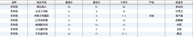 2024年3月18日全国主要批发市场茶树菇价格行情