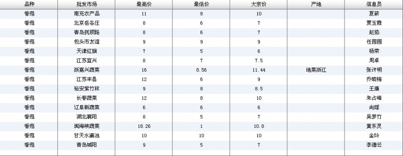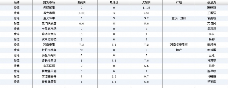 2012.05.09 香菇全国批发市场价格行情 单位(元/公斤) 来源:全国农产品批发市场价格信息网