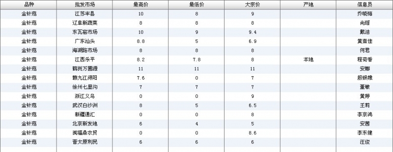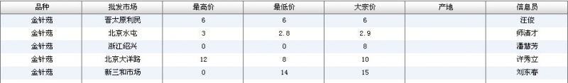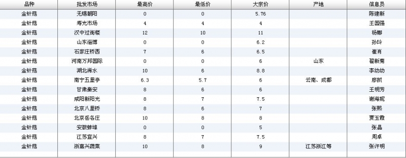 2012.05.09 金针菇全国批发市场价格行情 单位(元/公斤) 来源:全国农产品批发市场价格信息网