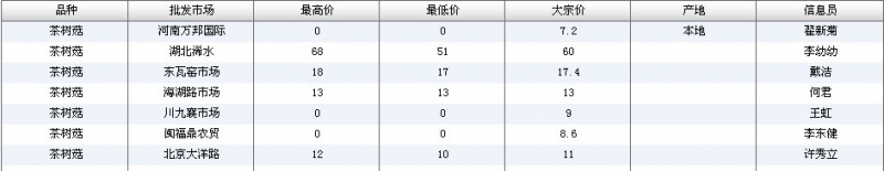 2024年3月18日全国主要批发市场茶树菇价格行情