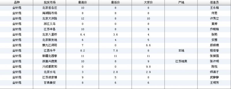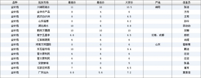 2012.05.10 金针菇全国批发市场价格行情 单位(元/公斤) 来源:全国农产品批发市场价格信息网