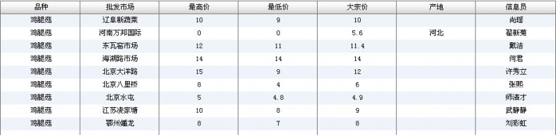 2012.05.10 鸡腿菇全国批发市场价格行情