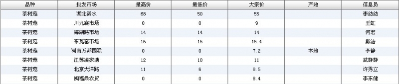 2012.05.11 茶树菇全国批发市场价格行情 单位(元/公斤) 来源:全国农产品批发市场价格信息网