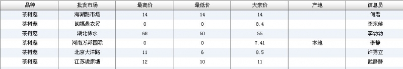 2024年3月18日全国主要批发市场茶树菇价格行情