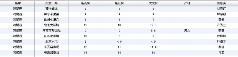 2012.05.14 鸡腿菇全国批发市场价格行情