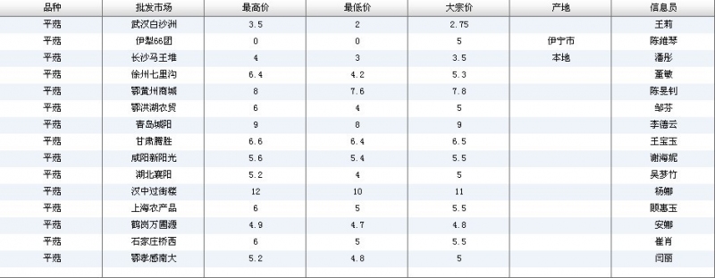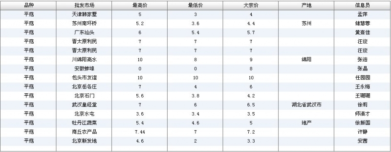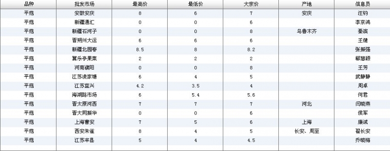 2012.05.16 平菇全国批发市场价格行情 单位(元/公斤) 来源:全国农产品批发市场价格信息网
