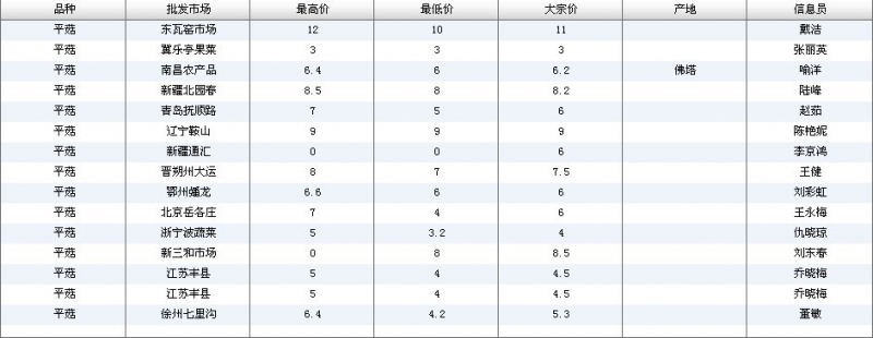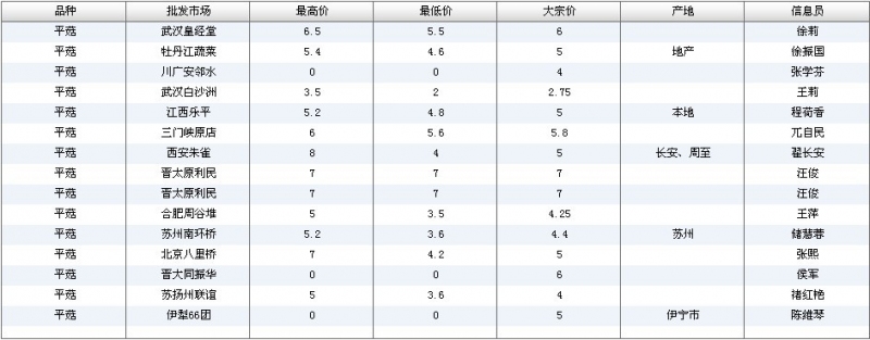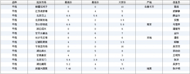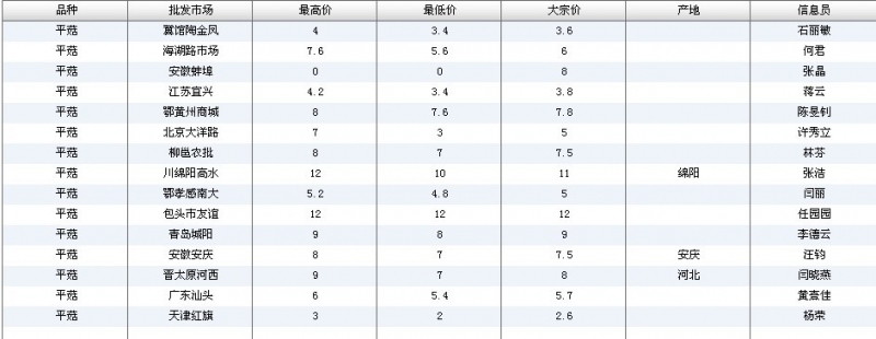 2012.05.17 平菇全国批发市场价格行情 单位(元/公斤) 来源:全国农产品批发市场价格信息网