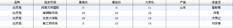 2012.05.17 白灵菇全国批发市场价格行情 单位(元/公斤) 来源:全国农产品批发市场价格信息网