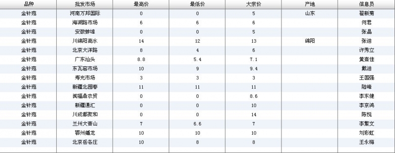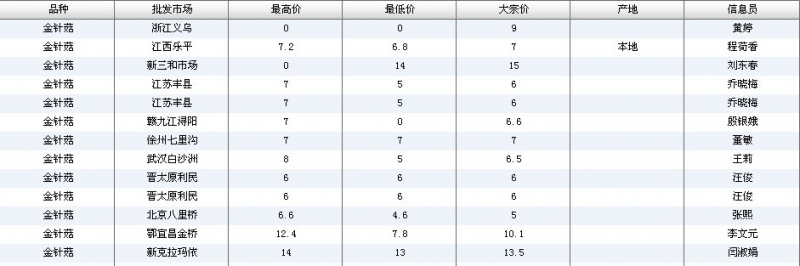 2012.05.17 金针菇全国批发市场价格行情 单位(元/公斤) 来源:全国农产品批发市场价格信息网