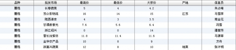 2018年10月11日蘑菇全国批发市场行情