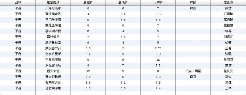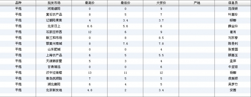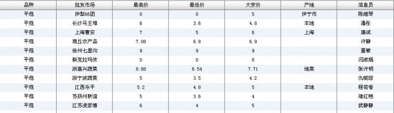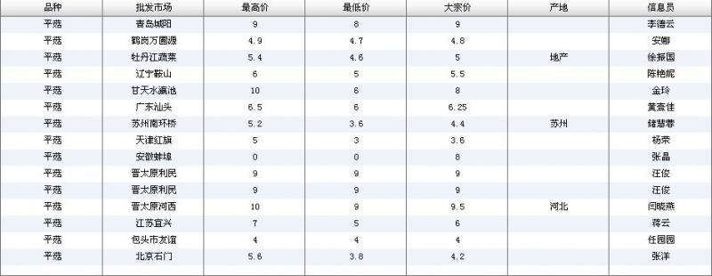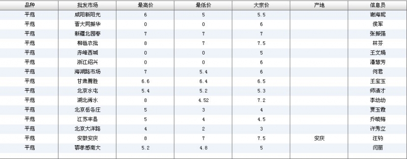 2012.05.21 平菇全国批发市场价格行情 单位(元/公斤) 来源:全国农产品批发市场价格信息网