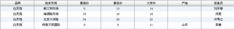 2012.05.21 白灵菇全国批发市场价格行情 单位(元/公斤) 来源:全国农产品批发市场价格信息网