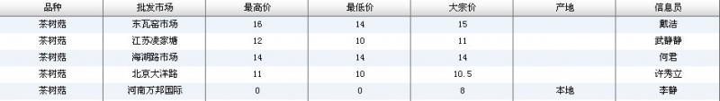 2012.05.21 茶树菇全国批发市场价格行情 单位(元/公斤) 来源:全国农产品批发市场价格信息网
