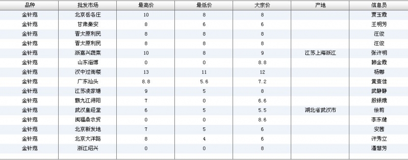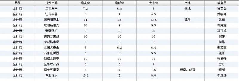 2012.05.22 金针菇全国批发市场价格行情 单位(元/公斤) 来源:全国农产品批发市场价格信息网