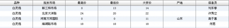 2012.05.23 白灵菇全国批发市场价格行情 单位(元/公斤) 来源:全国农产品批发市场价格信息网