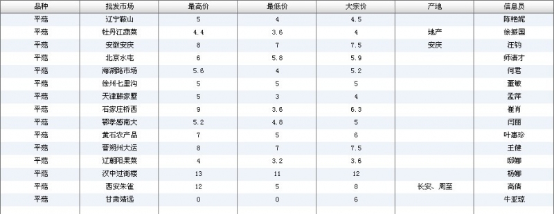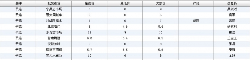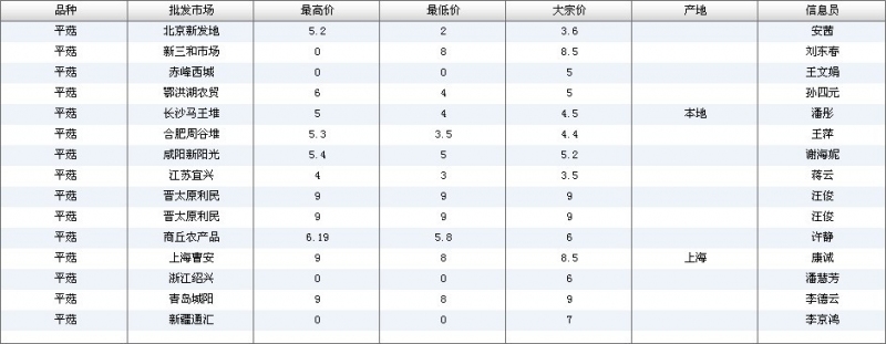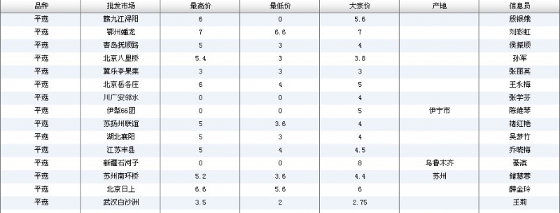 2012.05.24 平菇全国批发市场价格行情 单位(元/公斤) 来源:全国农产品批发市场价格信息网