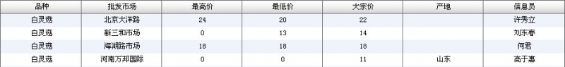2012.05.24 白灵菇全国批发市场价格行情 单位(元/公斤) 来源:全国农产品批发市场价格信息网