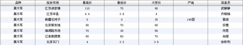 2012.05.24 黑木耳全国批发市场价格行情 单位(元/公斤) 来源:全国农产品批发市场价格信息网