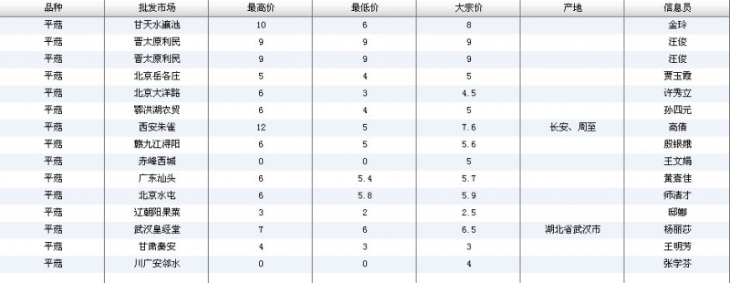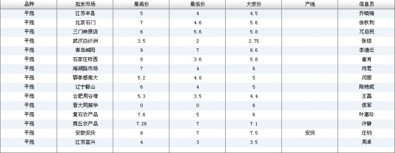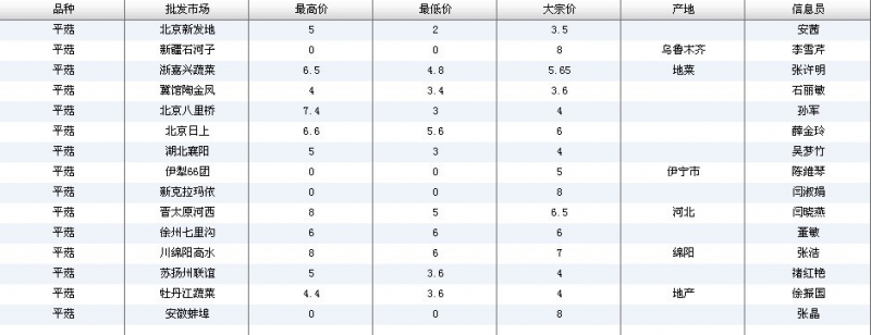 2012.05.25 平菇全国批发市场价格行情 单位(元/公斤) 来源:全国农产品批发市场价格信息网