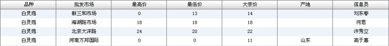 2012.05.25 白灵菇全国批发市场价格行情 单位(元/公斤) 来源:全国农产品批发市场价格信息网