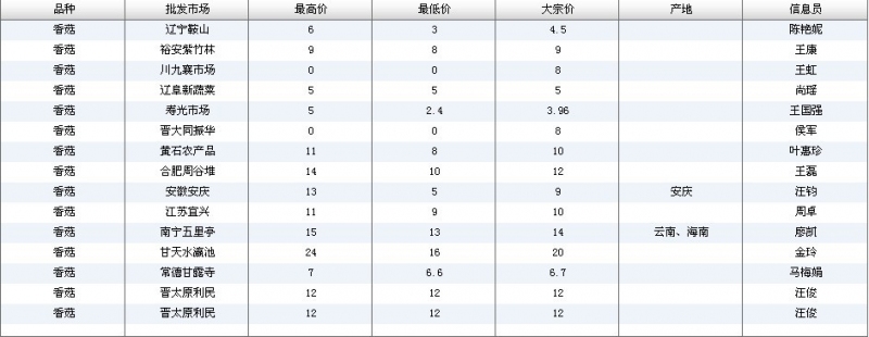 7月29日农业部:菌类批发价格日报