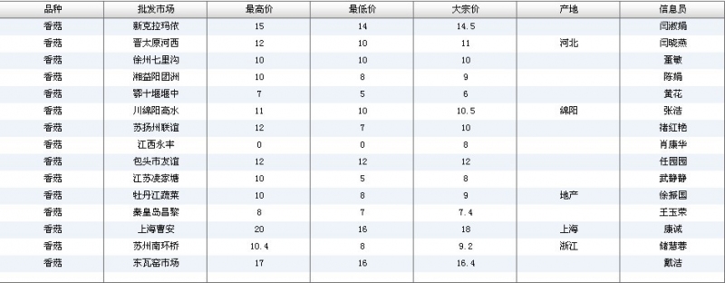 2012.05.25 香菇全国批发市场价格行情 单位(元/公斤) 来源:全国农产品批发市场价格信息网