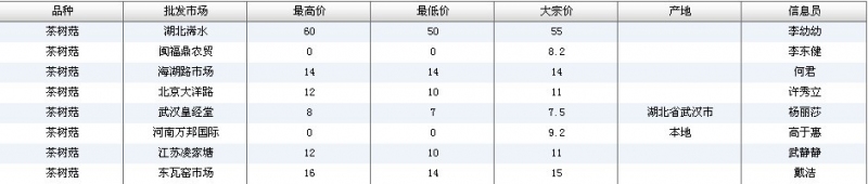2012.05.25 茶树菇全国批发市场价格行情 单位(元/公斤) 来源:全国农产品批发市场价格信息网