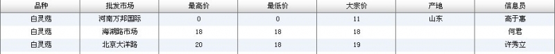 2024年3月18日全国主要批发市场白灵菇价格行情