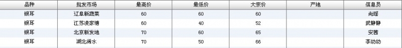 2012.05.26 银耳全国批发市场价格行情 单位(元/公斤) 来源:全国农产品批发市场价格信息网
