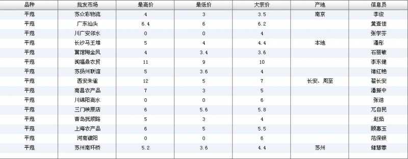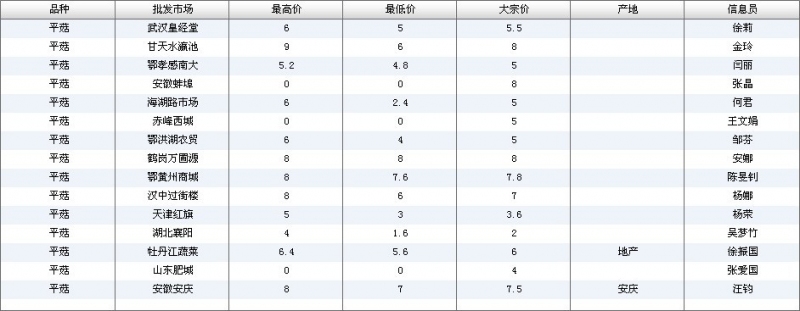 2012.05.28 平菇全国批发市场价格行情 单位(元/公斤) 来源:全国农产品批发市场价格信息网