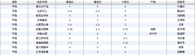 2024年3月8日全国主要批发市场平菇价格行情