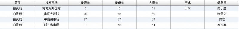 2012.05.28 白灵菇全国批发市场价格行情 单位(元/公斤) 来源:全国农产品批发市场价格信息网