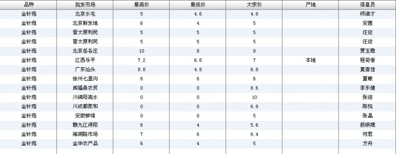 2012.05.28 金针菇全国批发市场价格行情 单位(元/公斤) 来源:全国农产品批发市场价格信息网