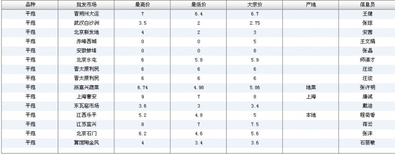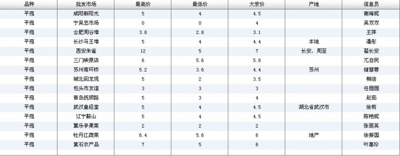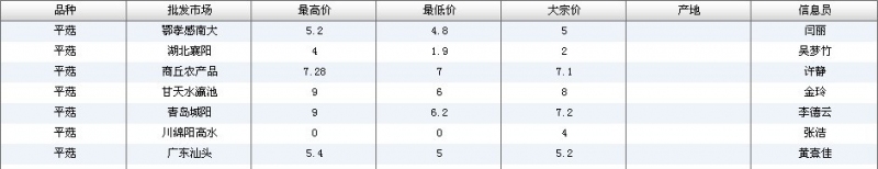 2012.05.29 平菇全国批发市场价格行情 单位(元/公斤) 来源:全国农产品批发市场价格信息网