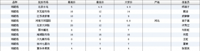 2024年3月18日全国主要批发市场鸡腿菇价格行情